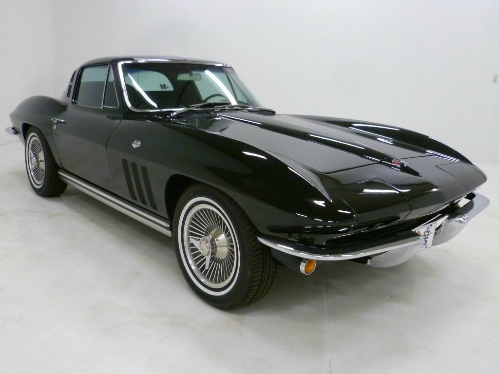 1012U..1965 Corvette Coupe, 327-350 hp, 4 speed, numbers matching original motor, transmission and rear end with CCAS/Grenning Engine Stamp Affirmation, also has factory original body/trim tag with CCAS/Grenning Trim Tag Affirmation, 69,713 actual miles. Tuxedo Black paint with Black interior. NO HIT body with all GM born with fiberglass. Body-on but appears body-off restored in show condition. Bloomington Gold certified, multiple NCRS Top Flight awards, NCRS PV'd (performance Verified) and the Gold Spinner award. Very rare and desirable Tuxedo Black/Black factory correct color combination. These type restorations normally exceed $125,000.00!!! Optioned with power antenna, leather, 3.70 posi, AM/FM radio, comfort/convenience group, back-up lights, day/night mirror, GM off road exhaust, tinted glass, knock-off wheels and white stripe radials, also includes original wheels, hubcaps, and vintage 7.75x15" blackwall tires. Also equipped with J61 drum brakes which was/is one of 316 produced. Most all factory correct type components including the non-D.O.T. U.S. Royal spare, jack, jack tools, clear floor mats, seat belts, washer system, shifter, shielding, air cleaner, alternator, distributor, idler pulley, spark plug shields, hoses, hose clamps, window glass, valve covers, fuel filter, starter, carb, finned balancer, 6-quart oil pan, exhaust heat shields, expansion tank, radiator, gas door assembly, Bowtie mirror, glove box door, owners manual, sales brochure, and T-3 headlights. Documented with the NCRS/GM Validated window sticker, car shipper, warranty book/P.O.P., dealer invoice, dealer bill of sale, CCAS/Grenning Engine Stamp Affirmation, CCAS/Grenning Trim Tag Affirmation, owners manual packet, title search (owner history), and Bloomington Gold, NCRS, Gold Spinner certificates and most judging sheets. Production date of January 25th, 1965 and delivered new by Fourth Street Motor Sales in DeKalb, IL (dealer code 220 in zone 11) per the official NCRS/GM Shipping Data Records (SDR). Editorialized in Vette Vues in color. This is one of the most thoroughly documented Corvettes we have ever seen and this is the 4th time that we have owned this car! Looks, runs, and drives excellent. CC:1 Consigned to Mecum Kissimmee Collector Car Auction January 15th - 17th, 2026